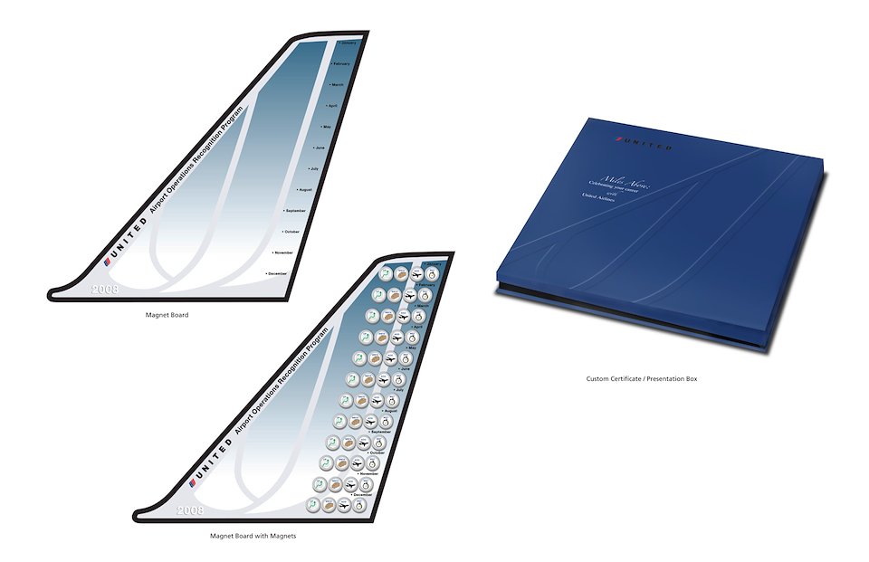 I designed this Magnet Board that measures approximately 20" tall. It is made of aluminum and the graphics were screen-printed onto the surface. I also designed the magnets to be used on the board. The purpose of the magnet board is to be displayed in the break room, with the option of standing it upright on a desk or mounting it on the wall, honoring the goals achieved by the employees each month. I also designed the Certificate of Achievement Box that was used for the Certificate to complete the presentation to the recipient.