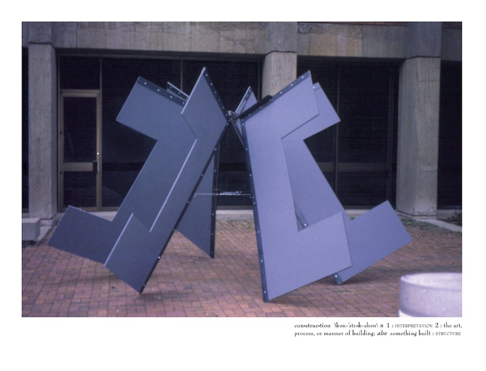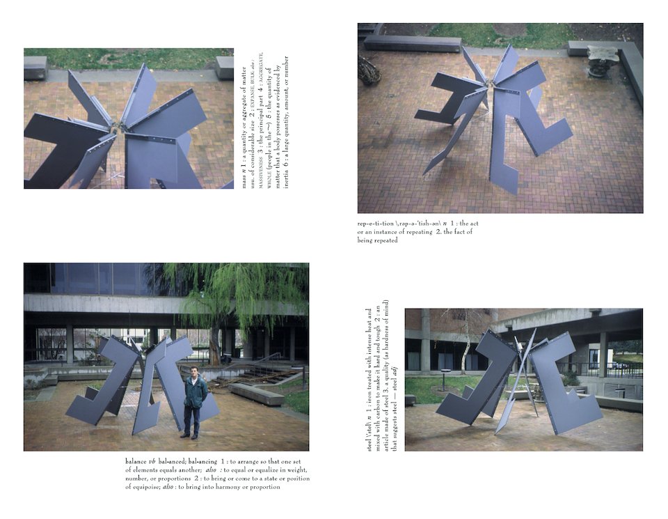 Sculpture of wood and steel. Repeating a single image demonstrating movement and balance (various perspectives).