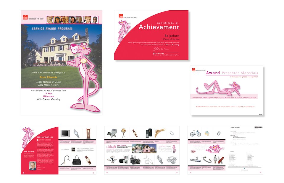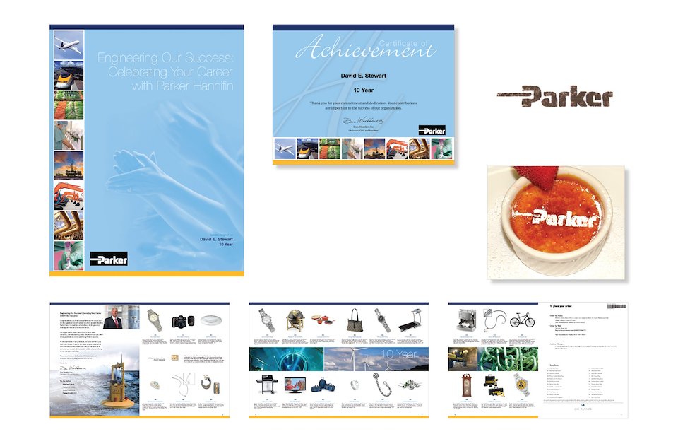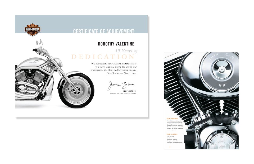 A Certificate for Harley Davidson, and a page design from the Brochure.